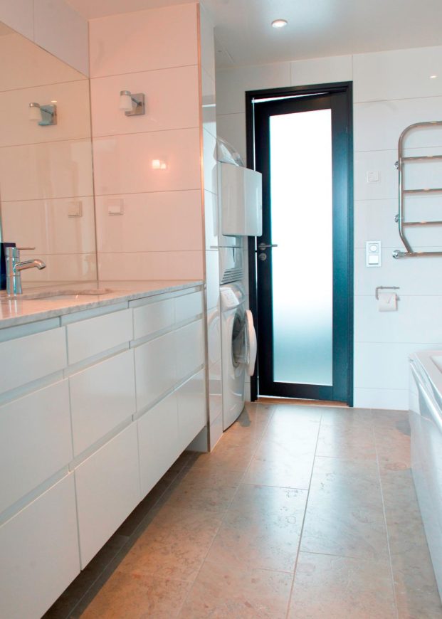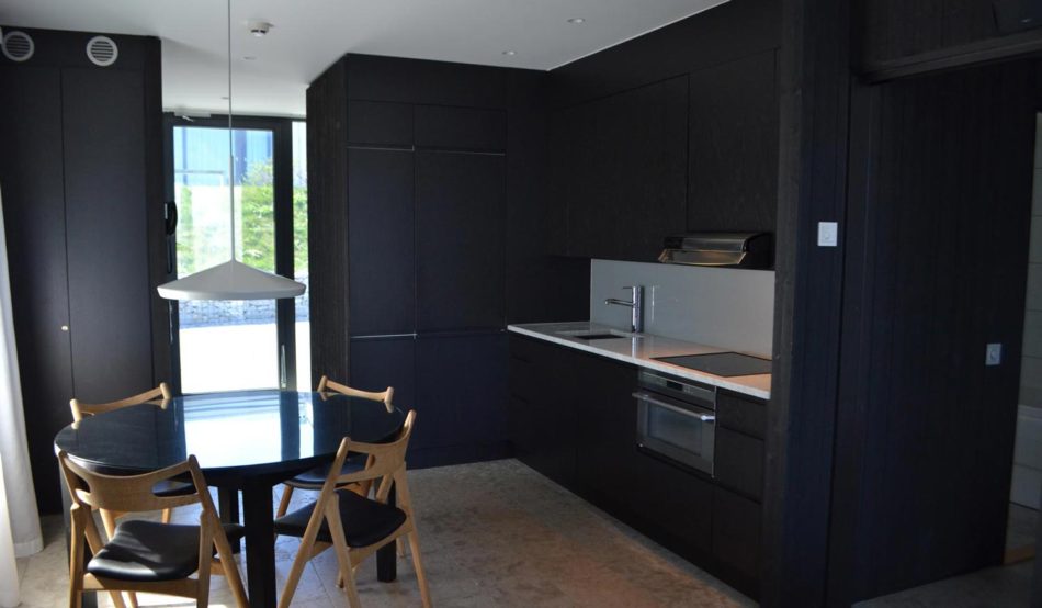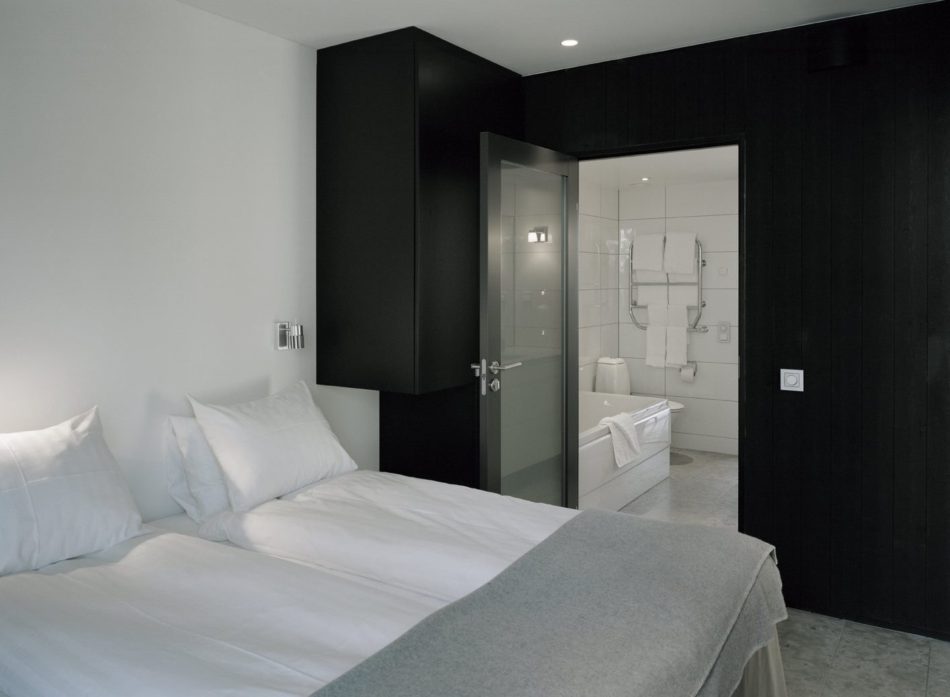 In the Oceanfront Bungalow, you stay in the row of bungalows closest to the sea with lovely sea views. There are two separate bedrooms, one of which has a double bed and the other has bunk beds. There is a cosy wood burning stove in the living room. The bathroom, which is located between the two bedrooms, is equipped with a washing machine and a tumble dryer, and there is a separate toilet.